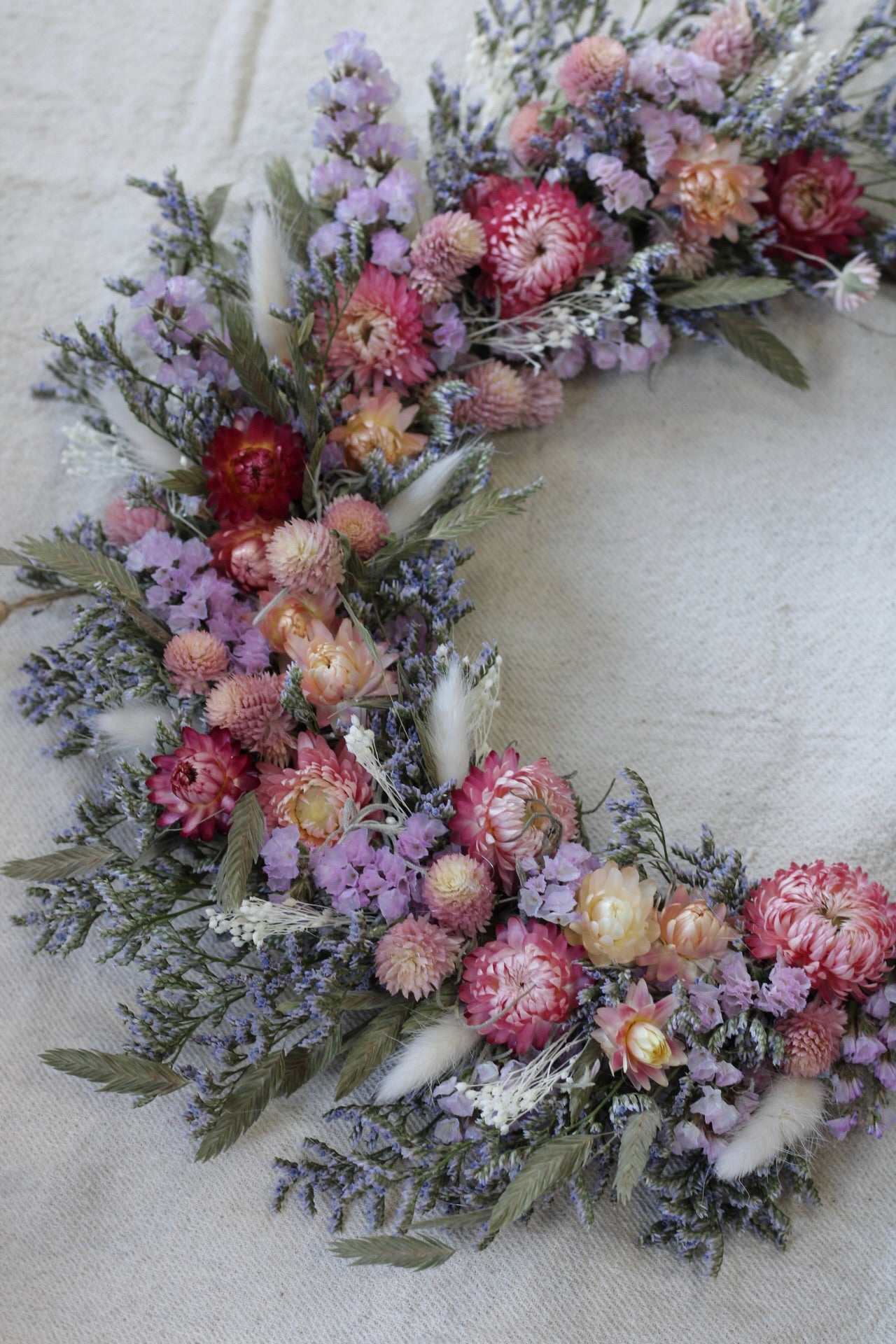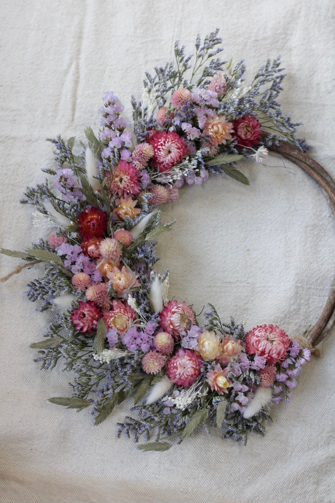 Each wreath is individually made using a curated selection of dried flowers and grasses, chosen for their quality, tone and durability. Due to the natural materials used, every piece is unique.
